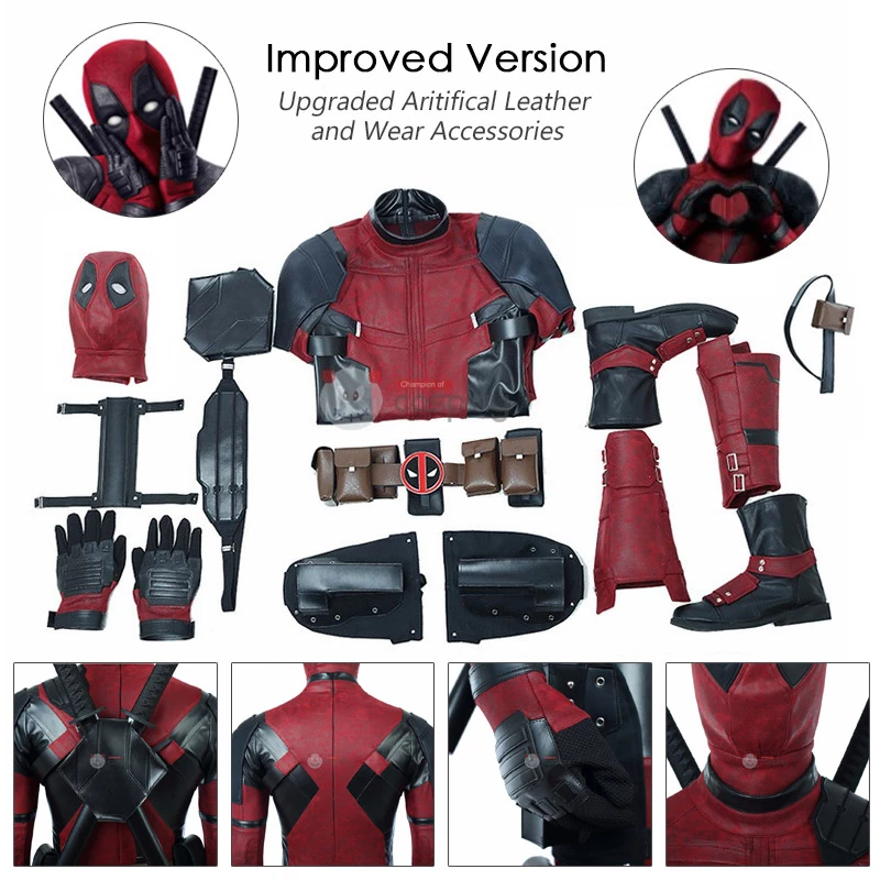 Buy Wade Wilson Cosplay Costume, We Sell Deadpool Cosplay Costumes all over the world, Fastest Delivery, 24/7 Online Service! Full Set Including : Jumpsuit, Mask, Gloves, Leg Guard, Strap, Belts, Holsters, Bags, Leg Bags, Boots Decoration, Boots(Extra Options), Dagger(Not including weapon, all courier companies, shipping is prohibited weapon.)